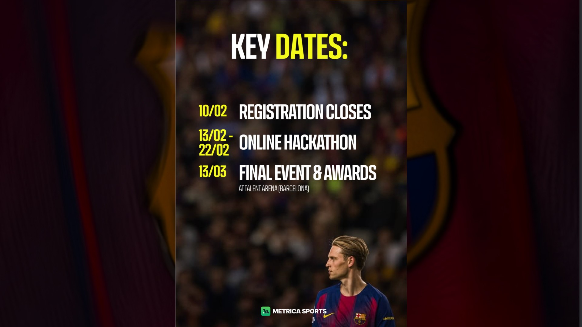 Organised within the framework of the Mobile World Congress (Talent Arena) and driven by Barcelona Innovation Hub, together with Metrica Sports and Talent Arena, the hackathon offers a unique opportunity to work with professional FC Barcelona datasets and address real analytical challenges faced by elite football environments.