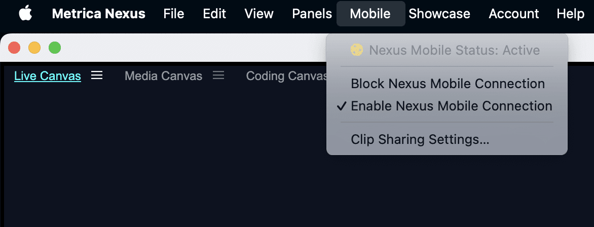 While the connection is enabled, Nexus Desktop and Nexus Mobile can exchange video, clips, and analysis data.
