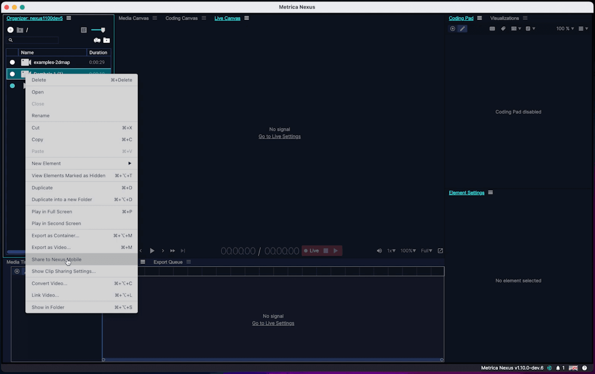 Choose Share to Nexus Mobile. Nexus will process the clips in the background and send them to the connected mobile device.